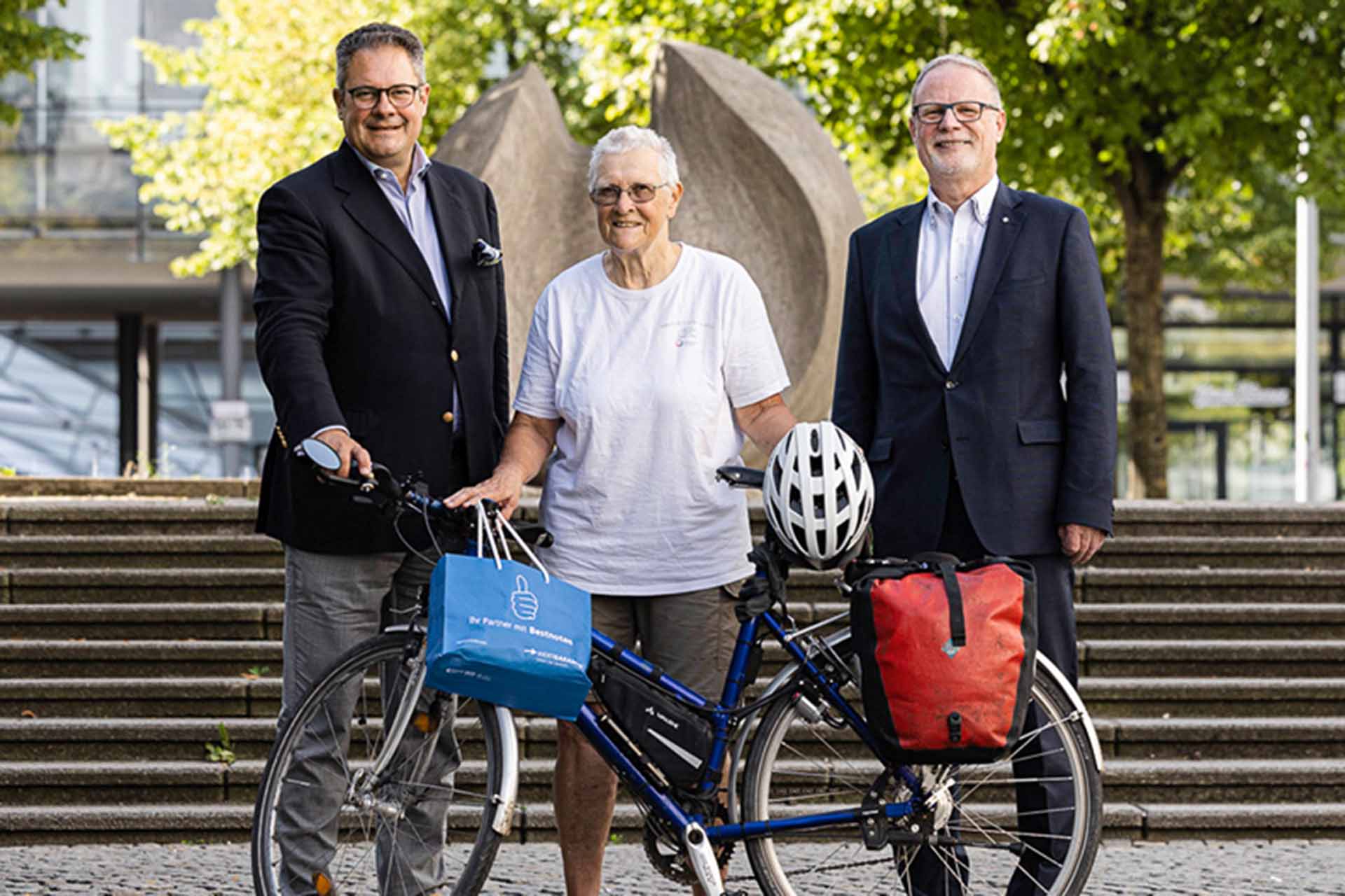 Ihr großes Ziel: Wenn es die Gesundheit erlaubt, im kommenden Jahr rechnerisch einmal auf dem Rad die Welt umrundet zu haben - das sind dann circa 40.000 Kilometer. Bei Wertgarantie werden schon einmal die Daumen für das Gelingen gedrückt, verriet Patrick Döring und zeigte sich vom nicht nachlassenden Enthusiasmus der 76-Jährigen beeindruckt: "So viel ist sicher, ob einmal um die Erde oder nicht: Dr. Marta Binders Leistung ist schon jetzt nicht von dieser Welt! Und deshalb unterstützen wir sie und ihre gute Sache selbstverständlich gern auch im nächsten Jahr."