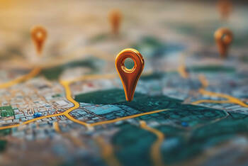 Eine grafische Karte auf der ein Ort besonders gekennzeichnet ist.