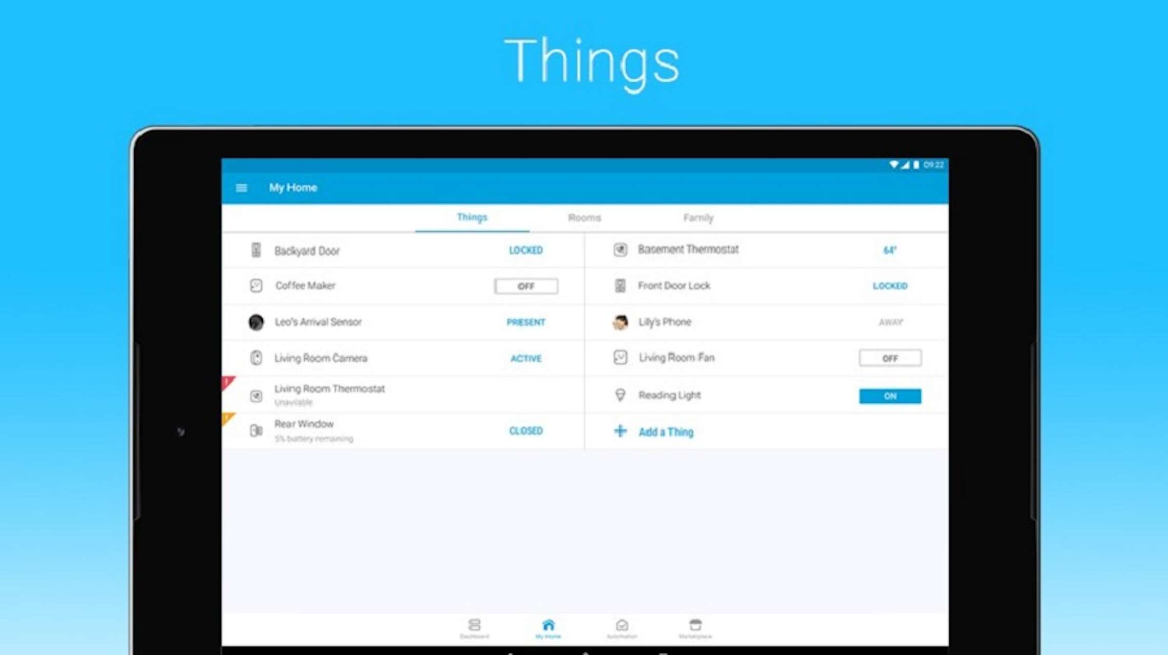 - Im Jahr 2015 sind jeweils neue Versionen des SmartThings Hub und der SmartThings App als Komponenten einer Steuerzentrale für das Smart Home auf den Markt gekommen.