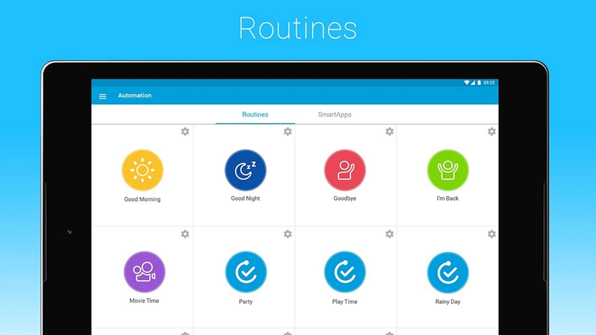 Die individuelle Automation des Smart Homes erfolgt über die Festlegung von Regeln und Szenarien. Dabei bestimmen Regeln das Verhalten der Smart Home Geräte in bestimmten Räumen oder Wohnungsbereichen zu bestimmten Zeiten oder während definierter Zeitabschnitte. Szenarien koordinieren zusätzlich das Zusammenspiel zwischen Geräten, die unterschiedliche Funktionen erfüllen. In der App SmartThings Classic sind für einen leichteren Einstieg einige Automationsroutinen unter den Bezeichnungen „Guten Morgen“, „Gute Nacht“ oder „Willkommen zu Hause“ vordefiniert. Anwender können die Routinen individuell anpassen oder neue Routinen nach Bedarf hinzufügen.