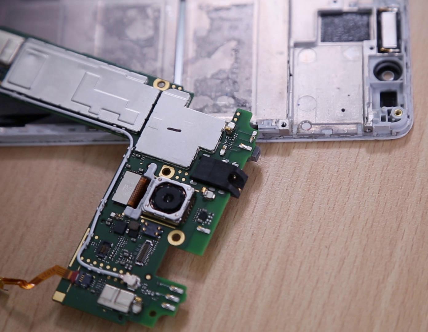Nehmen Sie nun Ihre neue Platine zur Hand oder löten Sie alternativ Ihr Ersatzteil fest. Setzen Sie das Motherboard an die entsprechende Stelle in Ihr Huawei Honor 7 ein. Anschließend setzen Sie die Frontkamera wieder ein und stecken die Verbindung zum Motherboard fest. Jetzt müssen Sie nur noch die restlichen Teile zusammenbauen.
