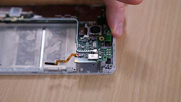 Die Kopfhörerbuchse des Huawei Honor 7 ist fest auf dem Motherboard verlötet. Da bedeutet, dass Sie die komplette Platine austauschen müssen, wenn Sie eine defekte Kopfhörerbuchse ersetzen möchten. Eine andere Möglichkeit ist es, die Komponente mit einem Lötkolben abzulöten und das Ersatzteil festzulöten. Dabei ist jedoch besondere Vorsicht gefragt, um nichts zu beschädigen.
