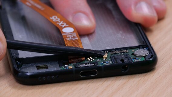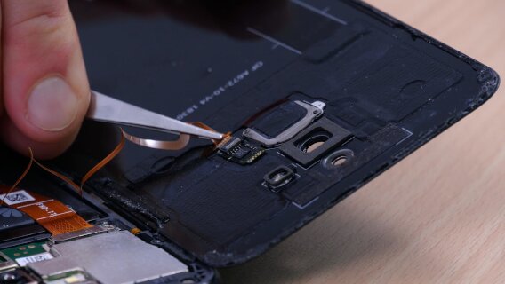 Beim Huawei Mate 20 Lite befindet sich der Fingerabdrucksensor auf der Rückseite. Reißen Sie hier nicht unvorsichtig das Backcover ab, da das Kabel extrem empfindlich ist. Lösen Sie das Flexkabel mit dem Spudger direkt am Verbindungspunkt. Wie das genau geht, sehen Sie im Video.
