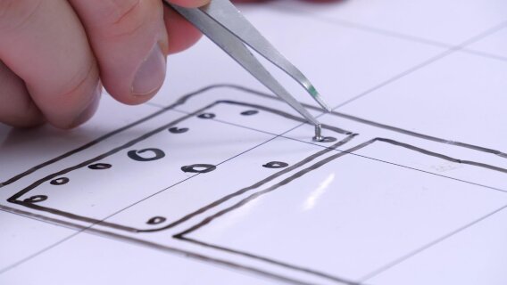 Wenn klar ist, was zu tun ist, zeichnen Sie auf die Magnettafel eine grobe Skizze des Huawei Mate 20 Lite, damit Sie dort später die Schrauben ablegen können. Merken Sie sich, in welcher Reihenfolge Sie welche Teile ausgebaut haben, damit beim Zusammenbau später alles an Ort und Stelle sitzt.