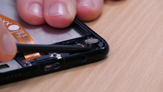 Der Vibrationsmotor ist dafür zuständig, dass Ihr Handy, wie der Name bereits verrät, bei Anrufen oder Nachrichten vibrieren kann. Auch den Vibrationsmotor trennen Sie mithilfe des Spachtels vorsichtig aus dem Gehäuse heraus.