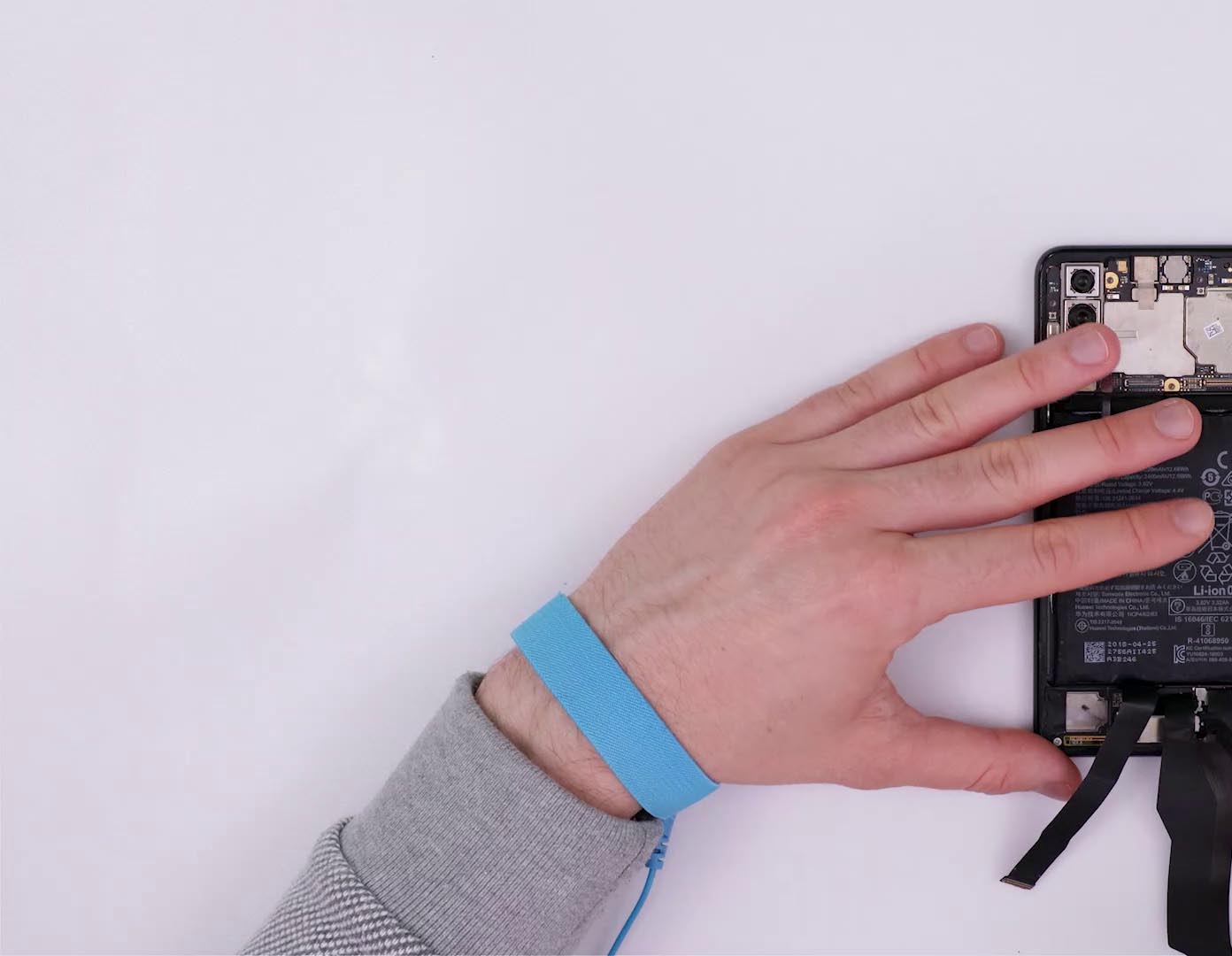 Es sollte ebenso erwähnt werden, dass Sie im Umgang mit einem elektronischen Gerät aufpassen müssen. Dies betrifft die statische Ladung. Im Alltag laden Sie Ihren Körper statisch auf, was in Ihrem Smartphone für einen Defekt sorgen kann während der Reparatur. Tragen Sie also eine ESD-Manschette.