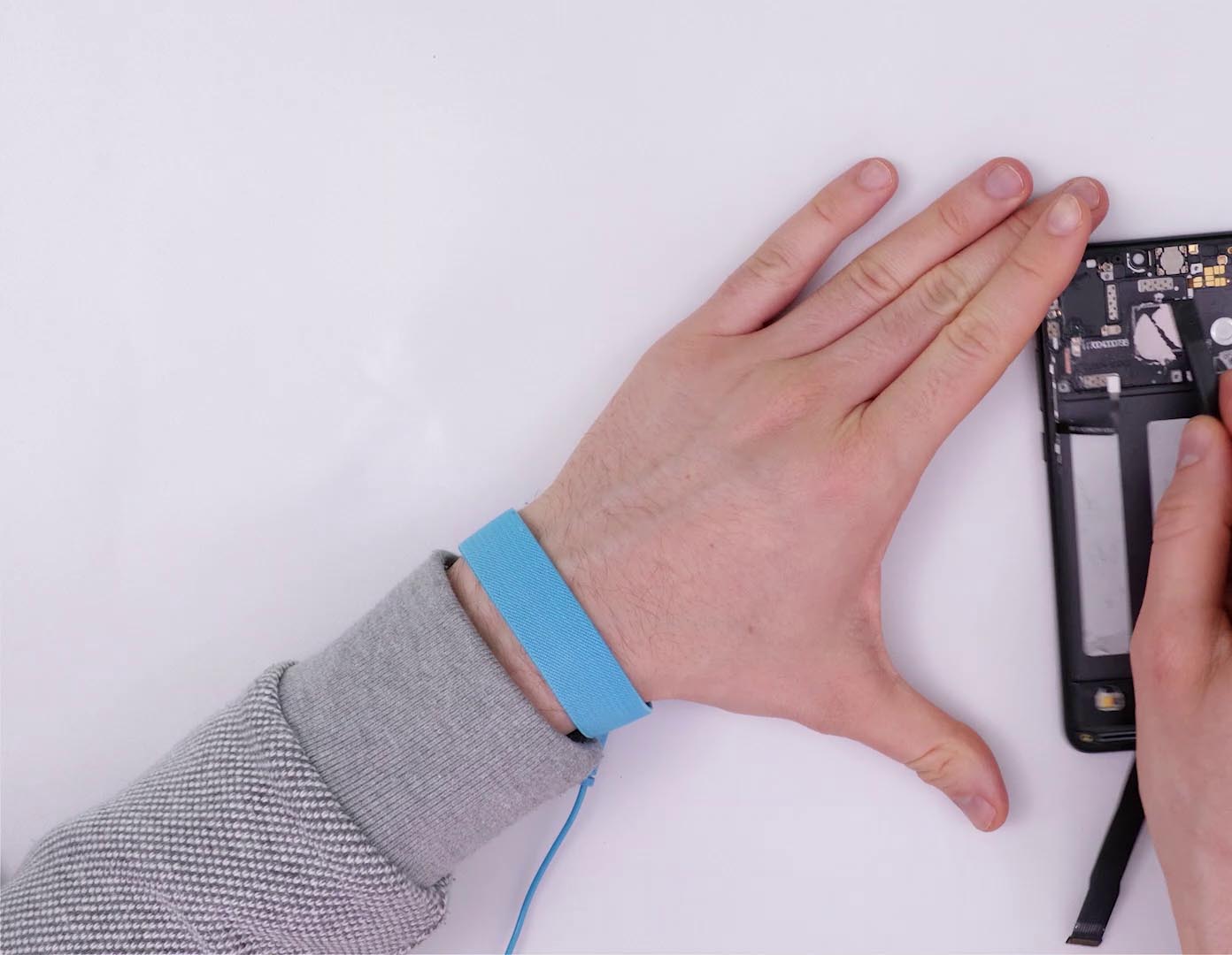 Im Alltag kann sich unser Körper durch Reibung elektrisch aufladen. Damit diese elektrische Ladung nicht Ihr elektrisches Gerät während der Reparatur beschädigt, empfiehlt es sich, eine ESD-Manschette zu tragen. Diese sorgt für eine Erdung des Körpers, welche ebenfalls durch ein regelmäßiges Berühren eines metallischen Heizkörpers geht.