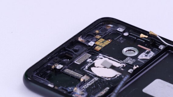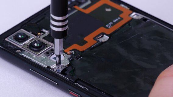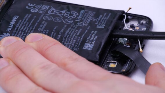 Im oberen Bereich des Huawei P20 finden Sie mehrere Schrauben, eine davon ist verdeckt, die Sie nach und nach alle lösen und entfernen können. Sobald alle Schrauben gelöst und entfernt sind, können Sie mit der Pinzette vorsichtig die obere Abdeckung greifen und diese sowie die Akkuabdeckung vorsichtig abziehen.