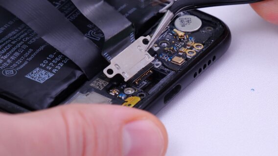 Bevor Sie den Akku des Huawei P20 entfernen können, sollten Sie die Ladebuchse im unteren Bereich entfernen. Hierfür brauchen Sie einfach nur alle Schrauben im unteren Teil des Handys lösen und entnehmen, bevor Sie mit einer Pinzette auch die Abdeckungen entnehmen können. Nachdem Sie auch die Steckverbindungen gelöst haben, können Sie alle restlichen Teile entnehmen.