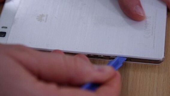 Für den Huawei P8 Lite Akkiutausch ist es sogar notwendig die SIM-Karte inklusive beider SIM-Slots zu entfernen, da Sie sonst bestimmte Teile des Smartphones gar nicht erst vom Motherboard lösen können.