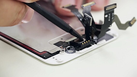 Bei einer so komplizierten Technik passiert es leicht, dass etwas nicht stimmt. Schließen Sie das Display also provisorisch wieder an und prüfen Sie, ob es angeht und funktioniert. Dafür müssen Sie das Flexkabel für einen Moment verbinden.