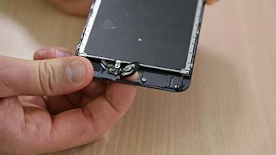 In einem neu gekauften Displayset sind meist nicht alle Komponenten vorhanden. Daher müssen Sie einige Teile aus Ihrem alten in das neue Display umbauen. Bauen Sie zunächst den Homebutton aus und anschließend Hörmuschel, Frontkamera und Sensor. Am Schluss schrauben Sie noch die Rückplatte ab.