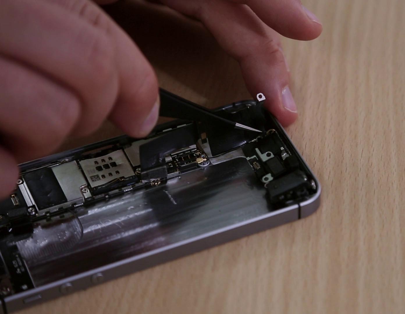 Nun liegt das Antennenkabel frei und kann aus dem iPhone SE herausgelöst werden. Daraufhin nehmen Sie Ihr passendes Ersatzteil und setzen es genauso ein, wie das alte Antennenkabel eingesetzt war. Stecken Sie die Verbindung fest und befestigen Sie die Lautsprecher sowie alle Schrauben des Antennenkabels.