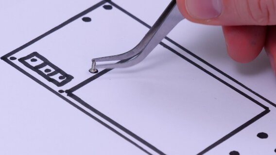 Wahrscheinlich haben Sie im zweiten Schritt bereits die Skizze des Galaxy A50 auf das Magnetpad gezeichnet. Wenn nicht, tun Sie dies jetzt. Das Magnetpad hat den Vorteil, dass Sie einfach auf den richtigen Stellen die Schrauben ablegen können, die dort besser liegenbleiben als auf einem normalen Papier.