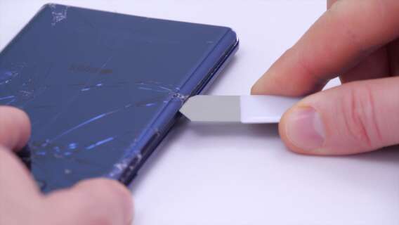 Um an die Kopfhörerbuchse zu gelangen, müssen Sie das Note 9 öffnen. Hebeln Sie es mithilfe des Spudgers auf und versuchen Sie, dabei nicht Display und Co. zu beschädigen. Ebenso wichtig ist es, den Fingerabdrucksensor auf der Rückseite nicht abzureißen.