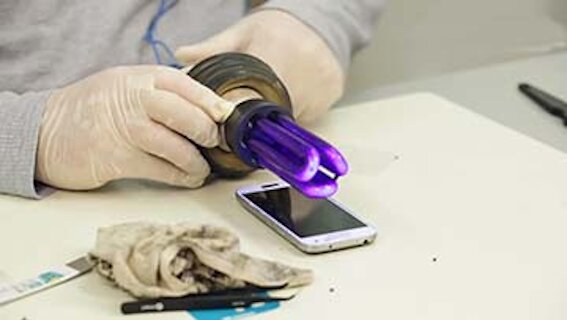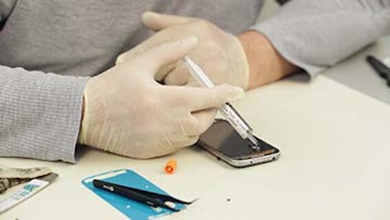 Nun können Sie den UV-Kleber auf Ihr Samsung Smartphone auftragen, damit Ihr neues Displayglas optimal hält. Am besten tragen Sie den Kleber in Form eines X auf, damit sich keine Lufteinschlüsse bilden. So vermeiden Sie, dass später Luftblasen unter dem neuen Displayglas sitzen und womöglich die Funktion stören.