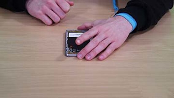 Sind die Gelkissen heiß genug, legst du dein Samsung Handy dazwischen. Lass es für etwa eine Viertelstunde zwischen den heißen Gelkissen liegen, sodass der Kleber weich wird und du das Backcover im nächsten Schritt abnehmen kannst. Gelkissen sind schonender für dein Smartphone als ein Heißluftföhn.