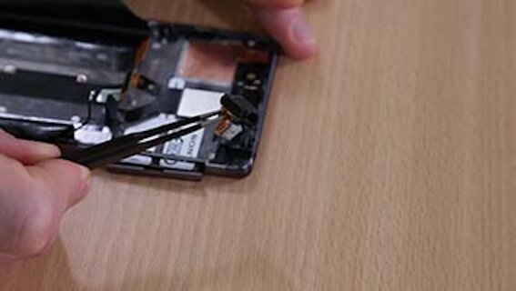 Nun gelangen Sie an die Kopfhörerbuchse. Diese können Sie mit einer Pinzette entnehmen. Anschließend können Sie Ihre neue Kopfhörerbuchse in das Sony Xperia XA einsetzen. Setzen Sie dann das Motherboard wieder ein und verbinden Sie die Steckverbindung der Kopfhörerbuchse sowie der anderen Komponenten.