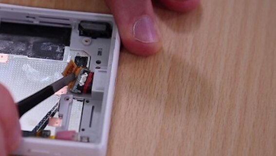 Lösen Sie alle sichtbaren Steckverbindungen. Entnehmen Sie vorsichtig nacheinander Front- und Backkamera Ihres Sony Smartphones und legen Sie diese zur Seite. Es folgen Lautsprecher sowie die schmale Seitenschiene. Gehen Sie dabei behutsam vor. Jetzt müssen noch Akku und Motherboard entfernt werden. Diese sind per Klebestreifen fest miteinander verbunden.