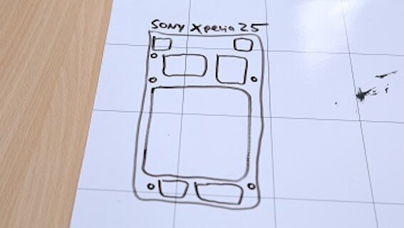 Ihr Smartphone hat im Inneren viele kleine Schrauben und Komponenten, die unterschiedlich lang sein können. Sitzt eine Schraube falsch, ist das schon problematisch. Wir empfehlen eine beschreibbare Magnettafel, deren Bestell-Link Sie bei den Werkzeugen auf dieser Seite finden. Zeichnen Sie eine Skizze des Handy-Inneren auf diese Tafel und ordnen Sie die Schrauben sowie anderen Teile darauf an. So können Sie Ihr Sony Xperia Z5 problemlos wieder zusammenbauen.