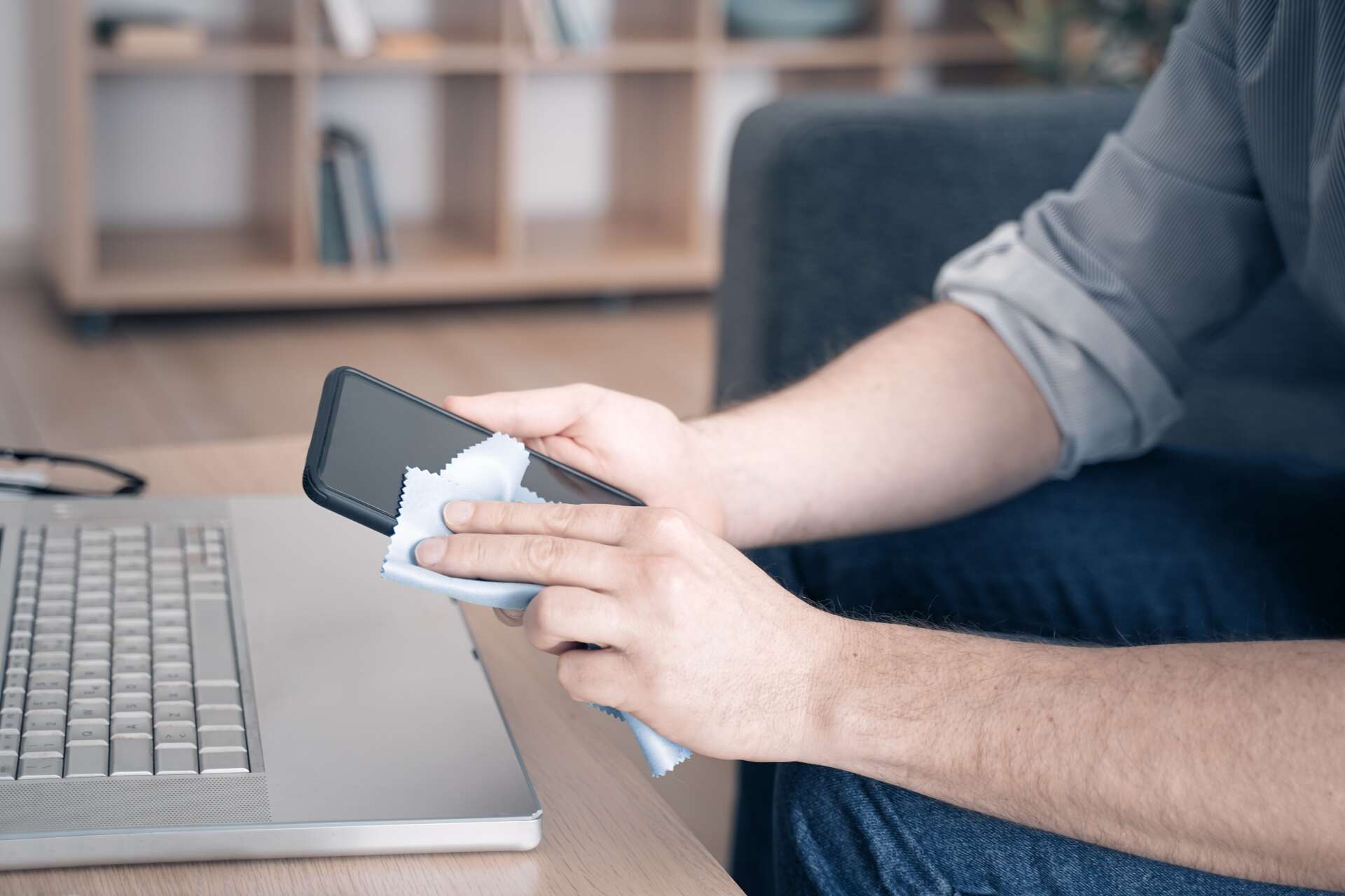 Diejenigen von Ihnen, die eine Brille besitzen, haben es vielleicht schon einmal getan oder zumindest daran gedacht. Auch Nicht-Brillenträger kommen schnell in die Versuchung, die kleinen Helfer zu Rate zu ziehen: Die Rede ist natürlich von Brillenputztüchern, in diesem Fall explizit von den einmalig verwendbaren Tüchern. Bereits für ein paar Euro im Drogeriemarkt oder bei Amazon zu erwerben, erscheinen sie als eine günstige und praktische Methode, um Ihr Handy reinigen zu können. Das ist jedoch ein Trugschluss: Beim Handy reinigen sollten Sie keine Abstriche machen – besonders nicht durch den Gebrauch von Brillenputztüchern. Diese sind in der Regel in Isopropylalkohol getränkt. Dieser Alkohol beseitigt zwar Schmutz und Fettflecke, zerstört jedoch auch eine wichtige Schutzschicht auf dem Display. Wollen Sie Ihr Handy reinigen, dann sollten Sie dazu auf keinen Fall ein Brillenputztuch verwenden.