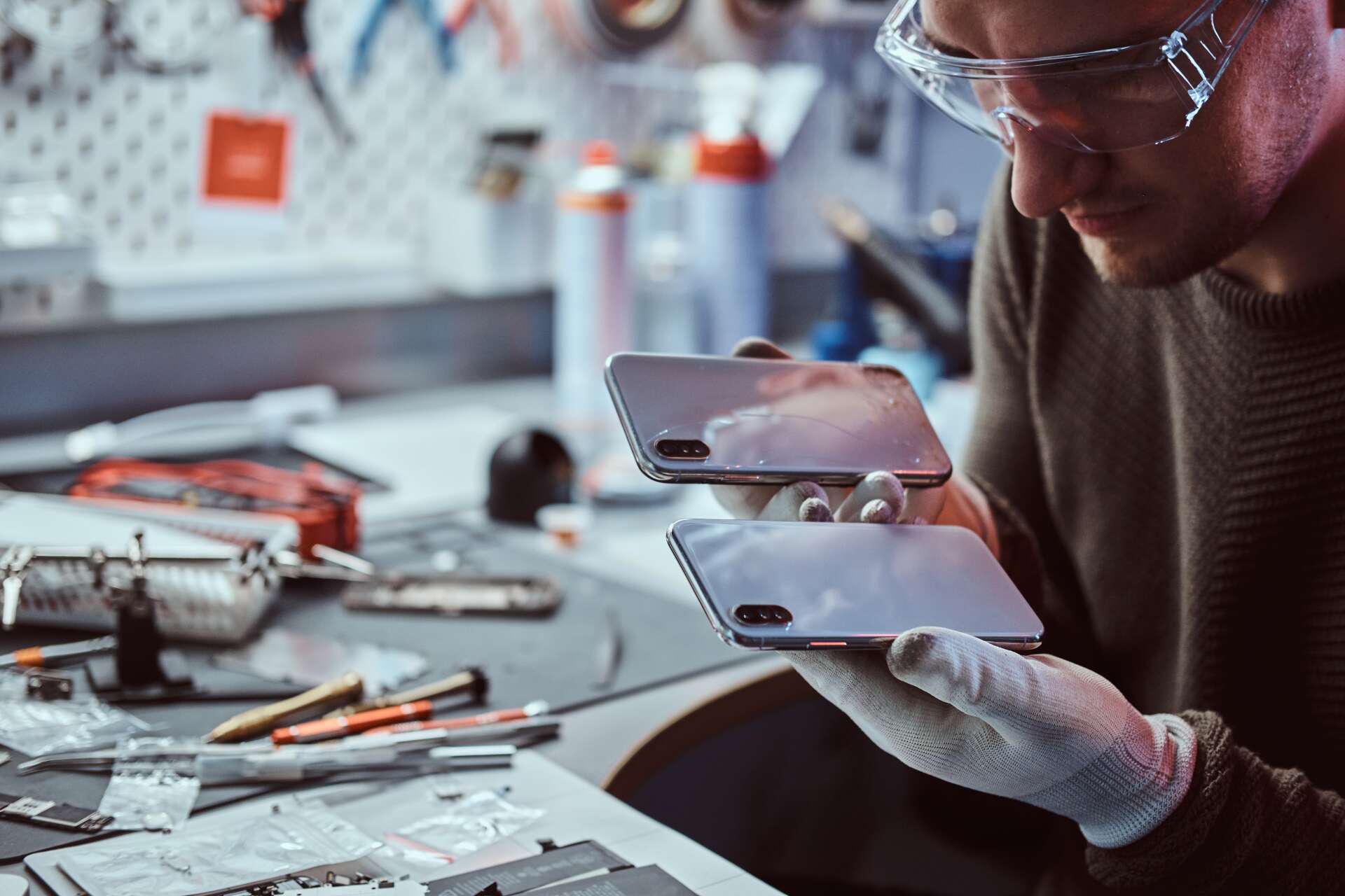 Die Luft in dem kleinen Raum in Hannovers Stadtmitte ist warm und stickig. Das grelle Deckenlicht bricht sich im Metall der Pinzetten, Scheren und Lupen und verleiht der Atmosphäre etwas Steriles. Wären da nicht all die Laptops und Kabel, könnte man meinen, man wäre in einem Operationssaal gelandet. „So ganz verkehrt ist das ja auch nicht“, sagt ein Mann mit kurz geschorenem Haar und schwarzem Brillengestell milde lächelnd. Marcel Jacob ist Servicetechniker für Smartphones. Gemeinsam mit fünf weiteren Kollegen repariert der 36-Jährige bei Smartphone-Repair, Niedersachsens größtem Reparaturcenter für Handys, des Menschen liebstes Spielzeug. „Wir leiten hier im Akkord lebenserhaltende Maßnahmen ein“, scherzt er. „Nur, dass die Patienten eben aus Plastik, Glas und Metall sind und die durchschnittliche Lebenserwartung deutlich geringer ist.“