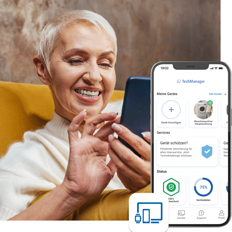 Mit dem TechManager von WERTGARANTIE verwalten Sie mühelos all Ihre Elektrogeräte. Ob versichert oder nicht – alles in einer App!